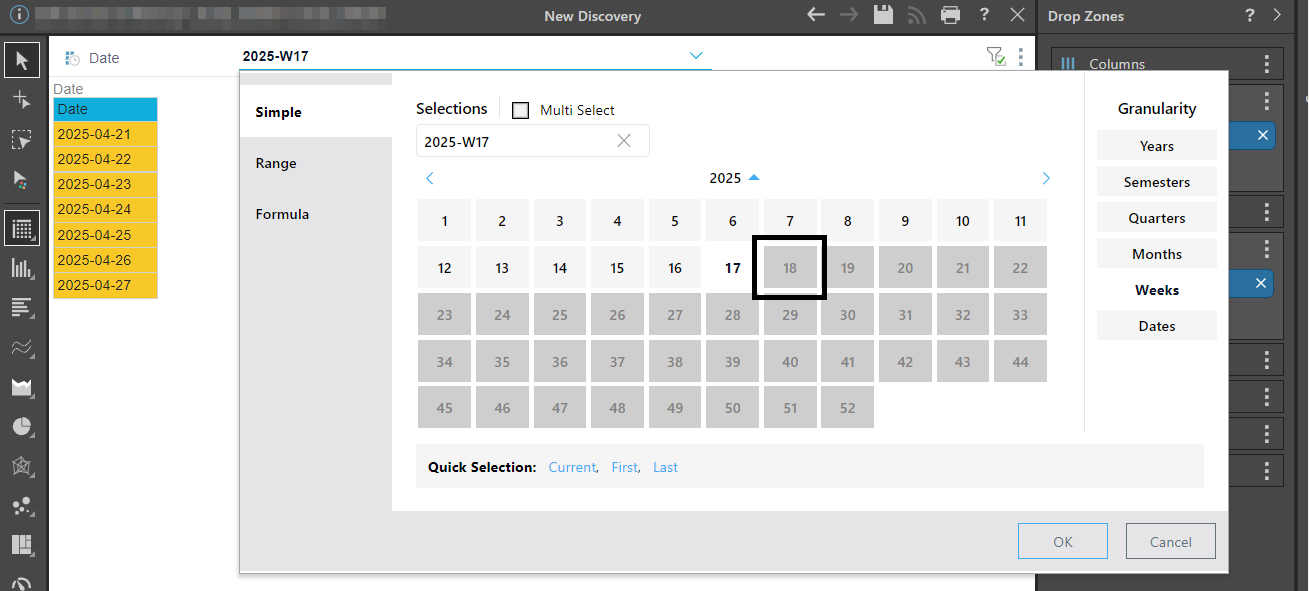 I'm reporting a bug in the Calendar Slicer logic when using "Weeks" granularity.