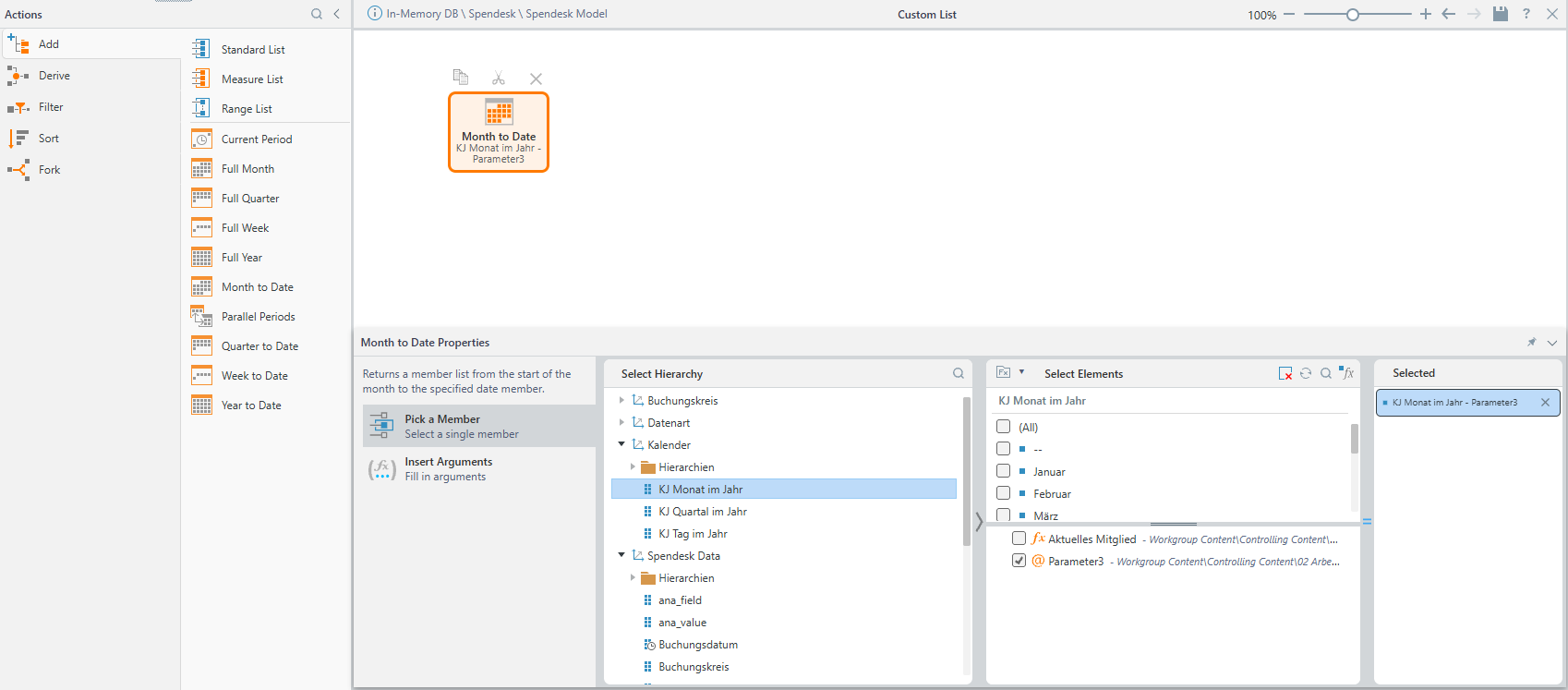 Aggregate( Range( [Kalendar].[KJ Month in Year].[Januar], [Kalendar].[KJ Month in Year].@[parameter id] ) )This way - you are aggregating on all the months until the selected one, which is essence makes it a YTD element.