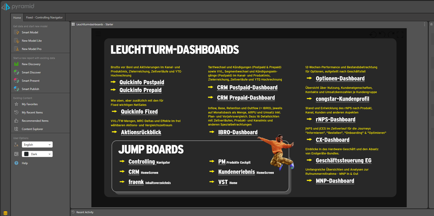 That's why we often use dashboards/presents to place text information on the Pyramid homepage. In your screenshot below left, you seem to be using it in a very similar way. Our "Starter Board," for example, is very popular. It teases important company dashboards with a short editorial text and then, of course, allows them to be accessed via a corresponding link.