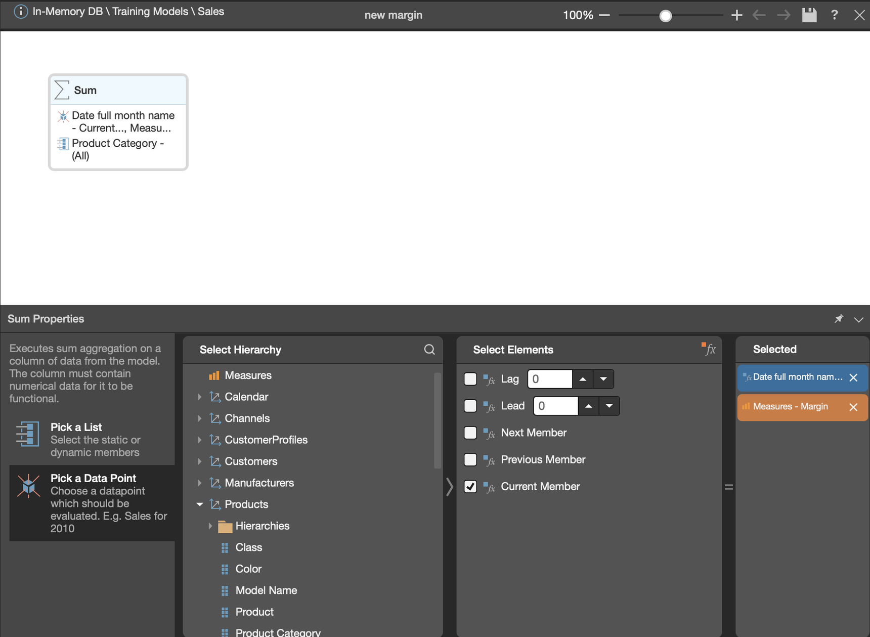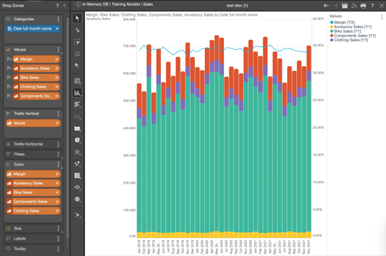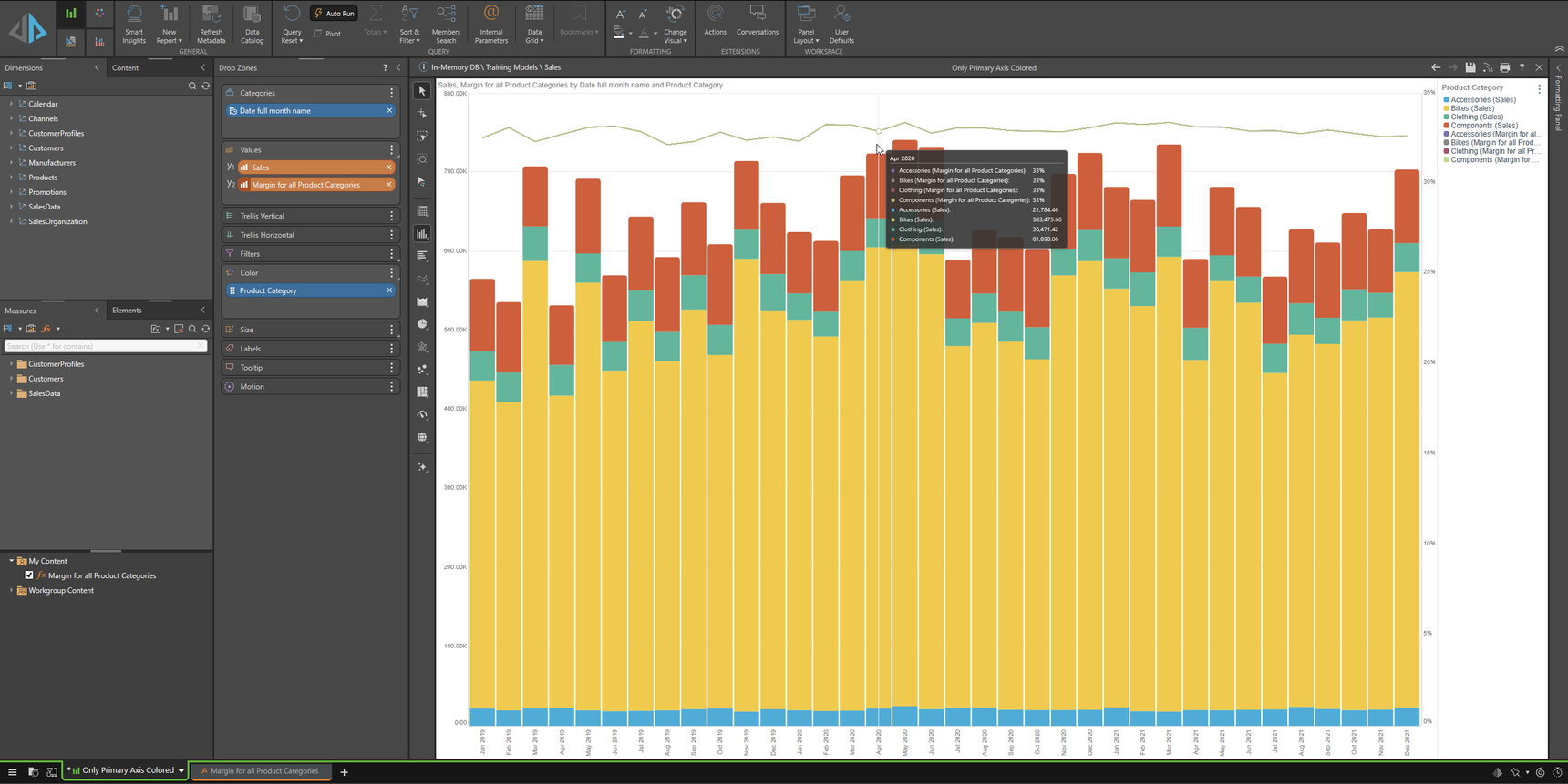 ...but the PRODUCT CATEGORY (Color drop zone) should only have an effect on SALES, not on MARGIN. So, I want to have ONE line chart for the overall margin.