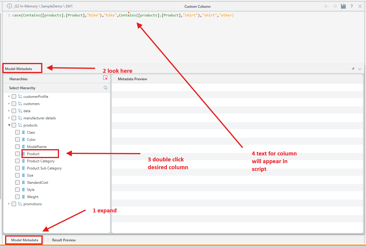 If you need to use this column globally, you can also add this logic as a "virtual column" into your semantic model. (Custom columns are identical, but can be secured and limited to certain users. Virtual columns are globally available to all users of a semantic model.)