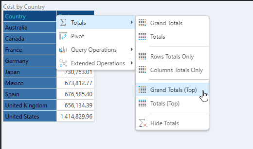 In a Matrix Grid there is an option to display the Grand Totals on top