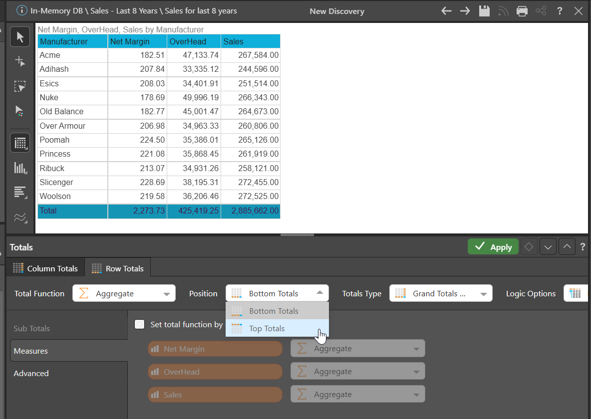 Use the Totals dialogue to change the position: