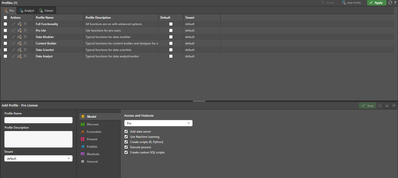 Hi , have you taken a look at this pyramid link? There is more context to your scenario if you take a look at the Features section under Model. There are specific box options that can be checked off to suit your specific needs for the ETL process. I know you mentioned disabling all editing capabilities, but have you tried manually disabling only the features you don't want. For example, you could only select the "execute process" and leave other features disabled and then run apply this profile to check. I hope this helps.