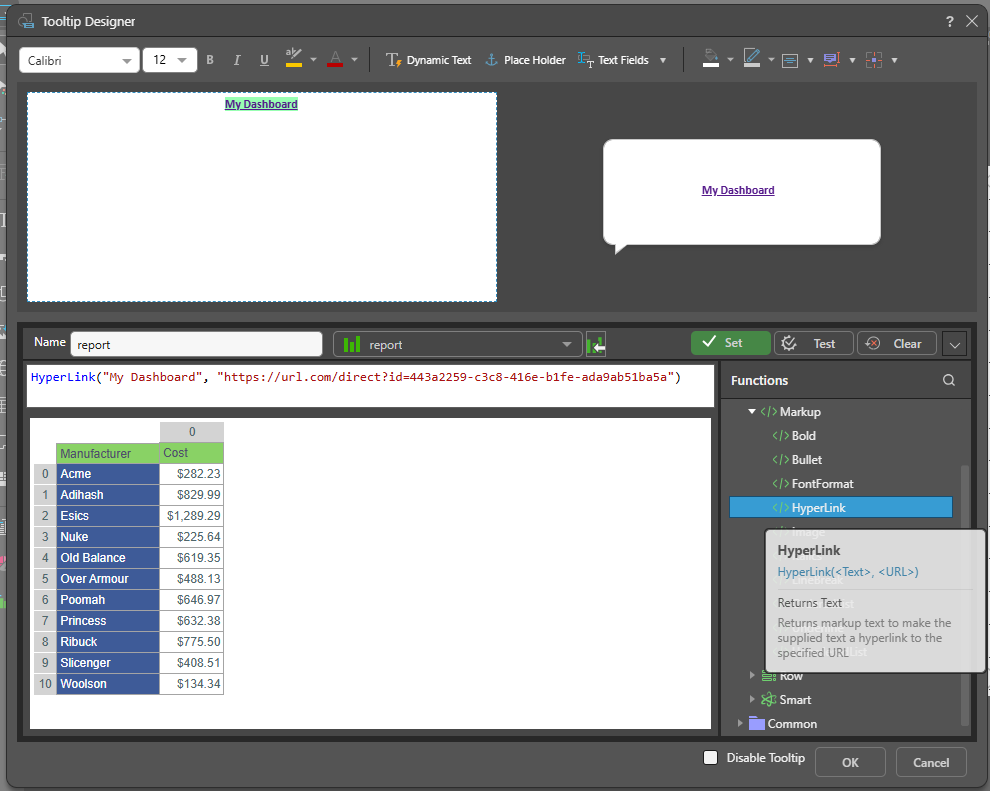 is it possible to insert a URL, which is reffering to another Doashbaord, into Tooltip as a direct link? It would scale up the UX to click on the URL directly and not to copy and paste the link manually.