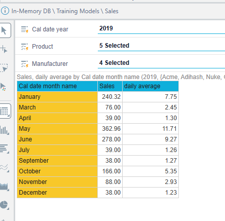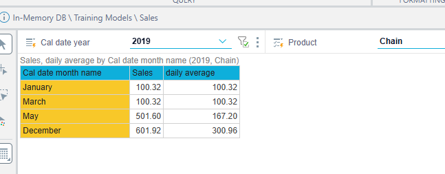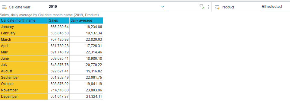 Do notice that you will get the average for days where you had sales - so If I filter to just one product: