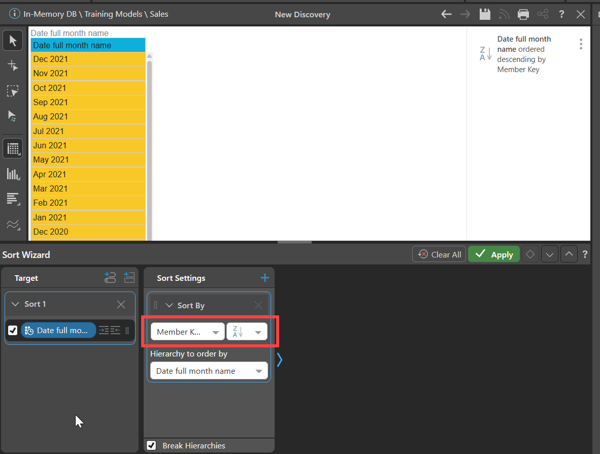 Click on the Pyramid Icon to test the set. you should see the months ordered correctly in the bottom right hand pane: